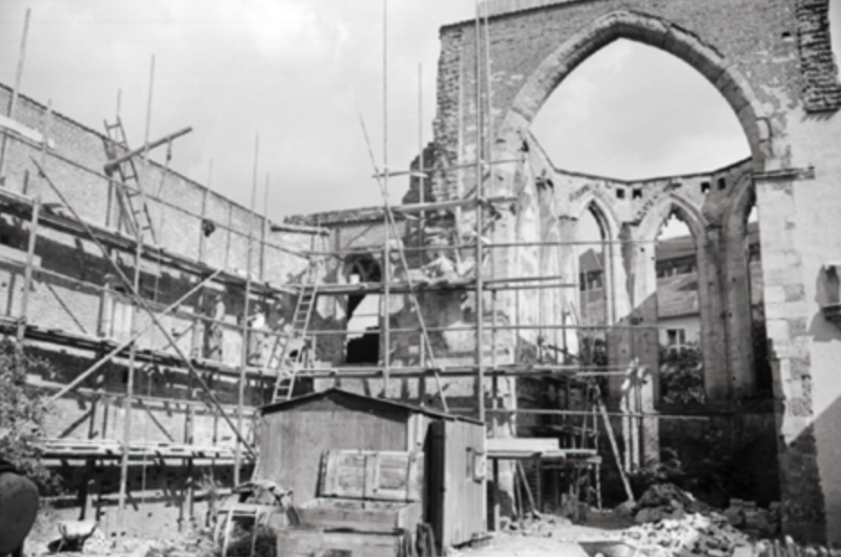 Die Katharinenkirche am Katharinenkloster 6, vor ihrer Zerstörung, ehemalige Kloster­kirche der Dominikaner­innen aus dem 13. Jahrhundert und Sitz der Akademie der Bildenden Künste in reichs­städtischer Zeit.